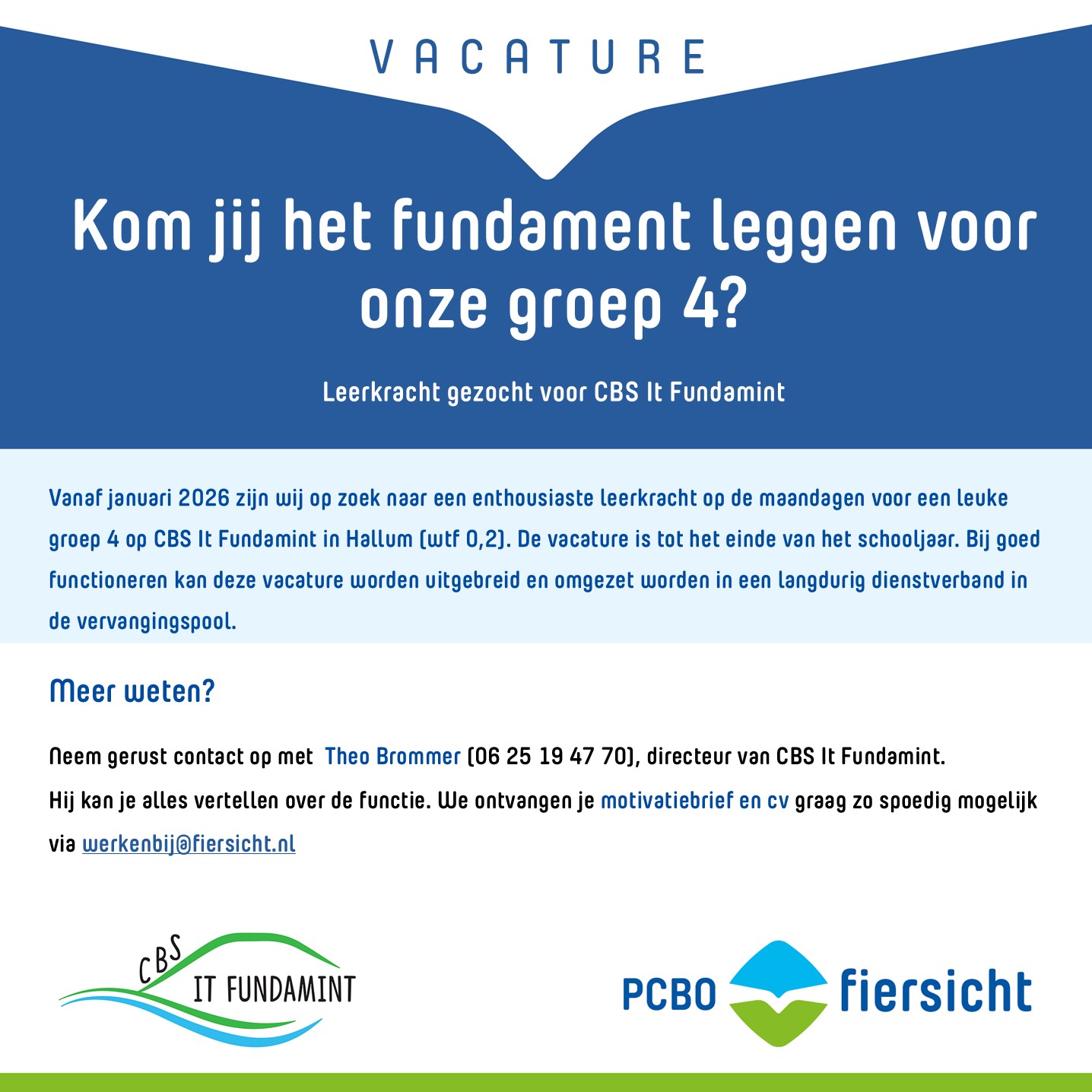 Leerkracht groep 4 CBS It Fundamint (0,2 fte)